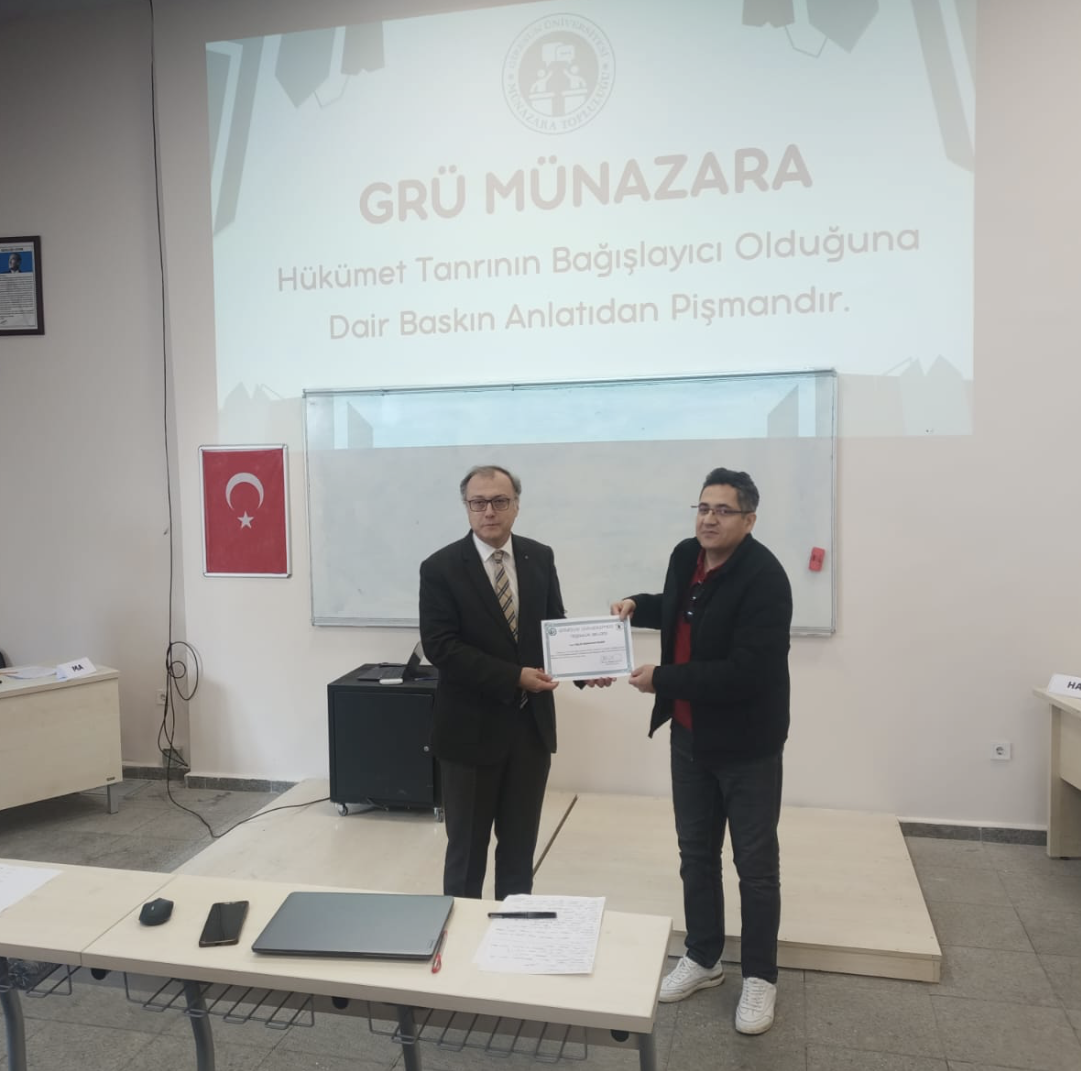 Program sonunda Fakültemiz Dekanı Prof. Dr. Muharrem AKOĞLU, münazara topluluğu öğrencilerini tebrik ederek kısa bir teşekkür konuşması yaptı. Prof. Dr. AKOĞLU, bu tür etkinliklerin öğrencilerin entelektüel gelişimine katkı sunduğunu belirterek emeği geçen akademisyenlere ve öğrencilere teşekkürlerini iletti.