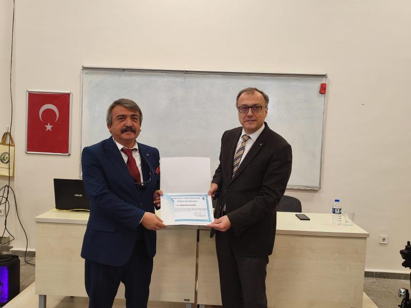 Programın sonunda Dekanımız Prof. Dr. Muharrem AKOĞLU, konuşmacılara fakülte adına teşekkür belgelerini takdim etti. Takdim töreninin ardından panel, konuşmacılar, akademik personel ve öğrencilerin katılımıyla hatıra fotoğrafı çekimi ile sona erdi.