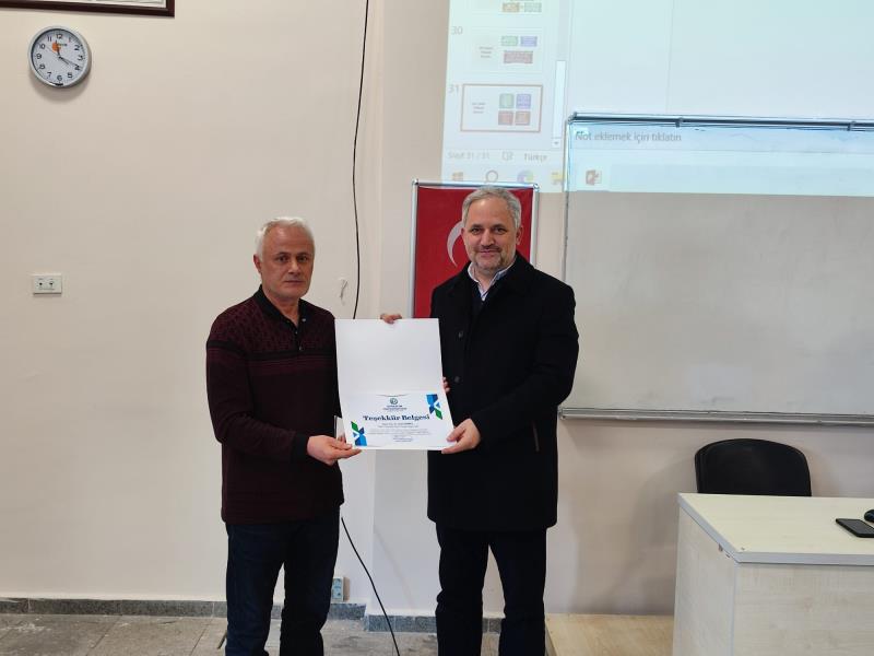 Programın sonunda katkılarından dolayı Doç. Dr. İslam DEMİRCİ’ye teşekkür belgesi takdim edildi. Program, hatıra fotoğrafı çekilmesinin ardından sona erdi.