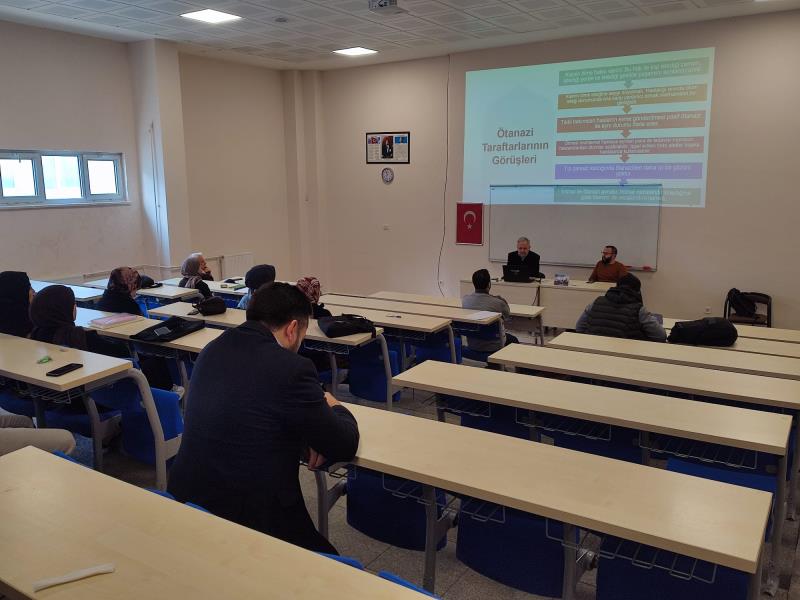 Fakültemiz tarafından düzenlenen Akademik Farkındalık Etkinlikleri kapsamında “İslam Hukuku Açısından Ötanazi” başlıklı program gerçekleştirildi. 11 Mart Çarşamba günü Ali Şir Nevâî Amfisi’nde düzenlenen etkinlikte öğrenciler ve akademisyenler bir araya geldi.