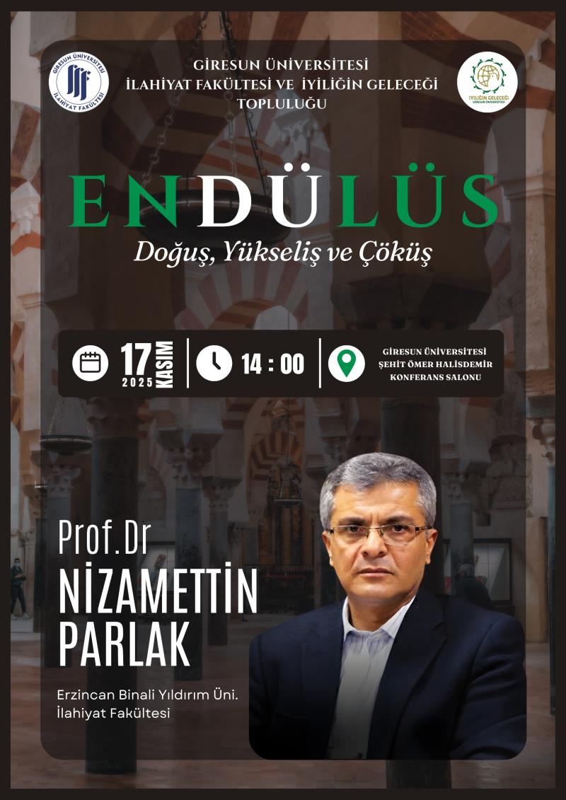 Fakültemiz ve İyiliğin Geleceği Topluluğu tarafından, İslam medeniyet tarihinin en önemli tecrübelerinden biri olan Endülüs’ü ele alan kapsamlı bir konferans düzenlenecektir. “Endülüs: Doğuş, Yükseliş ve Çöküş” başlıklı konferans, Erzincan Binali Yıldırım Üniversitesi İlahiyat Fakültesi öğretim üyesi Prof. Dr. Nizamettin PARLAK tarafından gerçekleştirilecektir. Etkinlikte, Endülüs medeniyetinin ortaya çıkışı, siyasî ve kültürel gelişim süreçleri, güçlü dönemleri ve nihai çöküşü; tarihî kaynaklar ve akademik literatür ışığında ele alınacaktır.