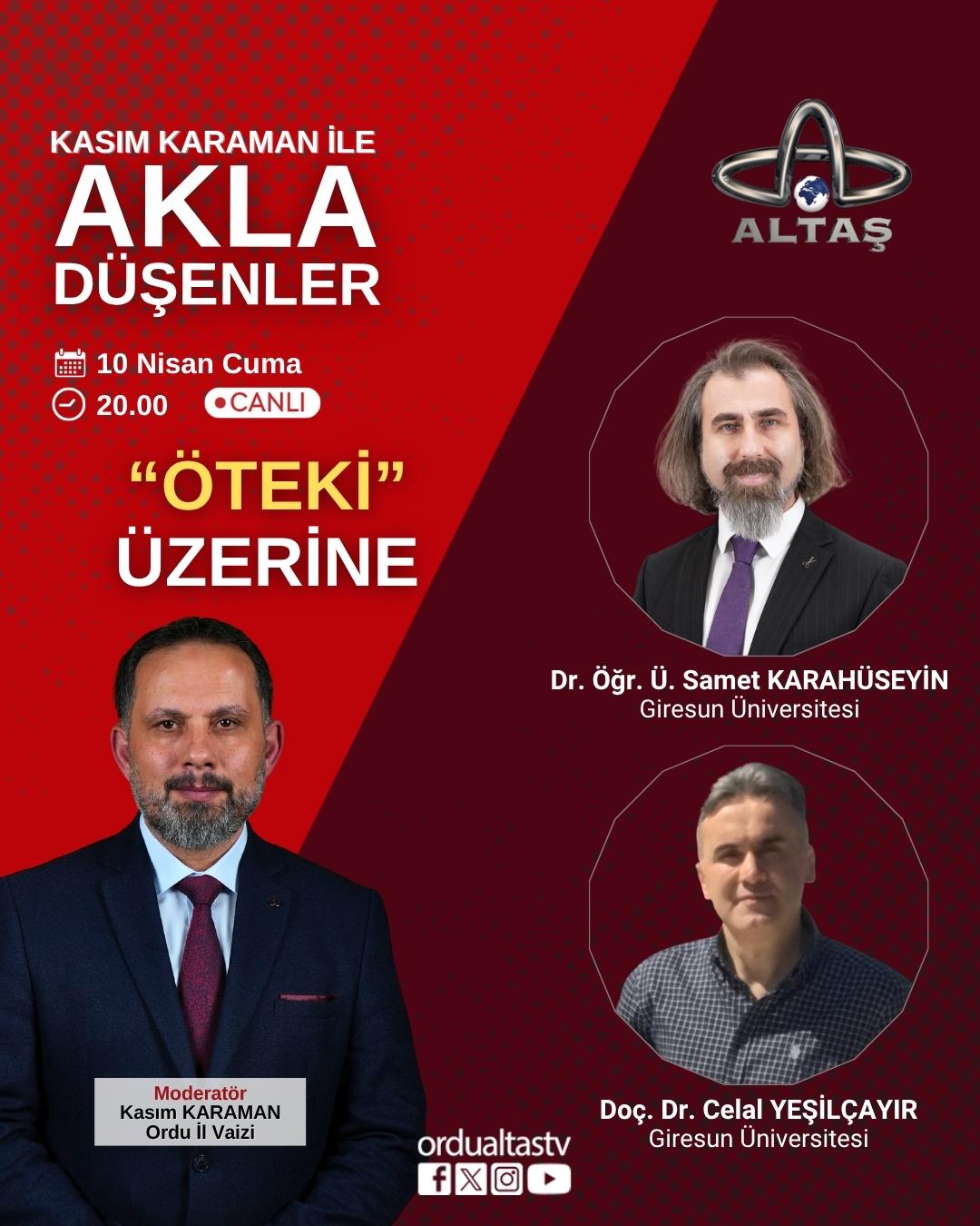 Fakültemiz öğretim üyeleri Doç. Dr. Celal YEŞİLÇAYIR ile Dr. Öğr. Üyesi Samet KARAHÜSEYİN, Kasım KARAMAN’ın moderatörlüğünde Altaş TV ekranlarında yayınlanan Akla Düşenler programına konuk olacak.